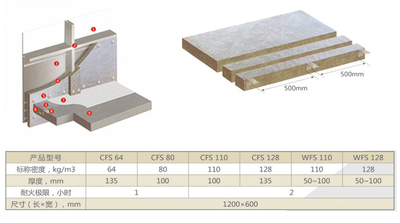 CFS系列不仅用于幕墙与楼板或幕墙与隔墙之间缝隙的防火和烟气阻隔,还可用于其它建筑缝隙包括各种穿墙或穿楼板的管道周围缝隙等的防火封堵。为了增强CFS系列产品的烟气阻隔能力,一般会在岩棉的上下表面贴防火铝箔。WFS系列主要用于幕墙系统中窗槛墙部分的防火分隔,其优越的保温性能可有效的降低此部分的热量传递。WFS系列表面可以贴铝箔等饰面材料。